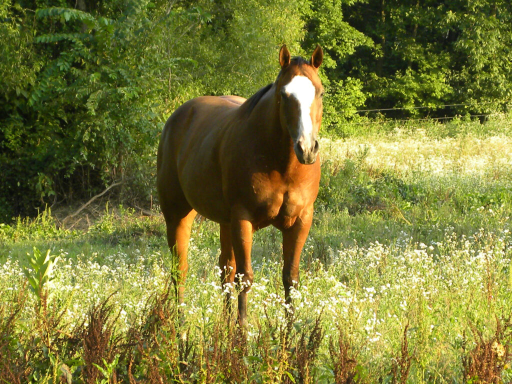 I am a quarter horse and I am the leader of the group here at the stables. It’s not an easy job but someone has to do it! I like to eat grass and grain and LOVE alfalfa! I’m in excellent shape as you can tell by my figure. I love my horse family but I really love when people are around and when they ride me. It’s the best part of my day! I hope you will come out and see me. If you’d like you could brush my coat, pet me or ride me. I love when people are on my back and I can show them what a smart horse I am. I’ve had very good trainers in my life and I can tell what my rider wants by the way they touch me. (I also know a lot of spoken human words.) What I’m best at is knowing what you want by the slightest touch. Don’t worry if you’re nervous because many people are. I, and the rest of the horses here, are very gentle. We know people love us and we want people to know we love them too!