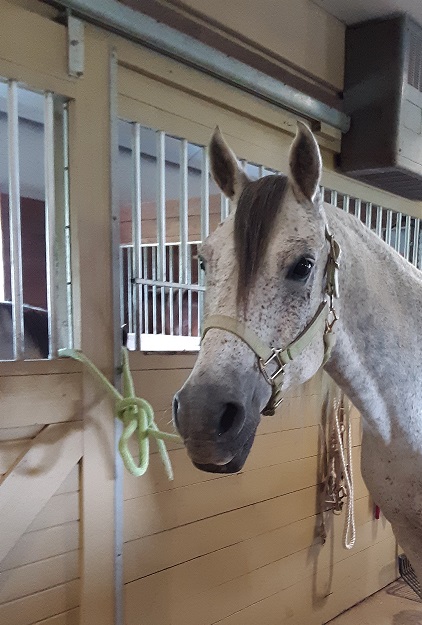 I am an Arabian. I am a laid back gal. Not much bugs me, except flies, I hate those annoying things. I am a go-to for many new students, whatever that means. I am told I have a wonderful personality for the beginner, I just am being me. I love attention. I love to be brushed and petted. I am a horse that will do most things asked. Every once in a while, I feel I don’t need to kick that silly soccer ball, but the instructor tells me it makes the kids feel really good accomplishing something like that, so I usually give in and kick the silly thing. Come by and see me some time, I love apples.