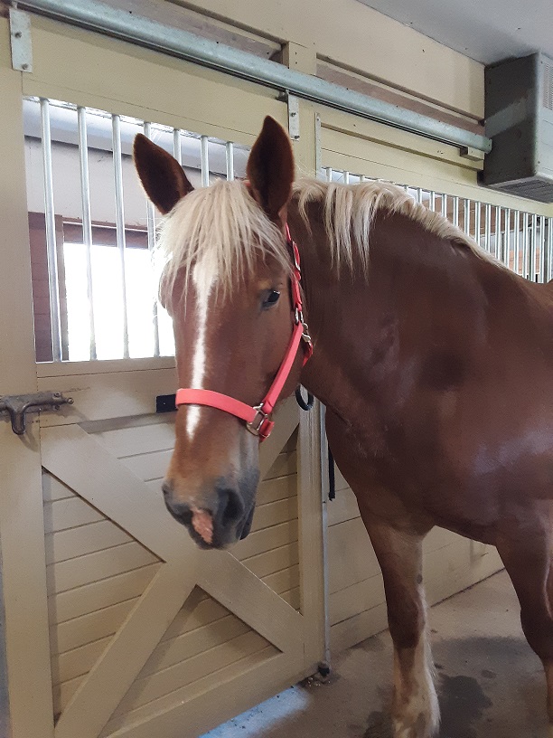 I am a full Belgian draft horse. My best friend is Fancy, but don’t tell the students. I can pull big loads with a cart and carry some of the smallest riders around. When people ride me they feel like they are on top of the world. Swing in and say hello but don’t let my size intimidate you, I am truly a gentle giant. Even though I am gigantic.